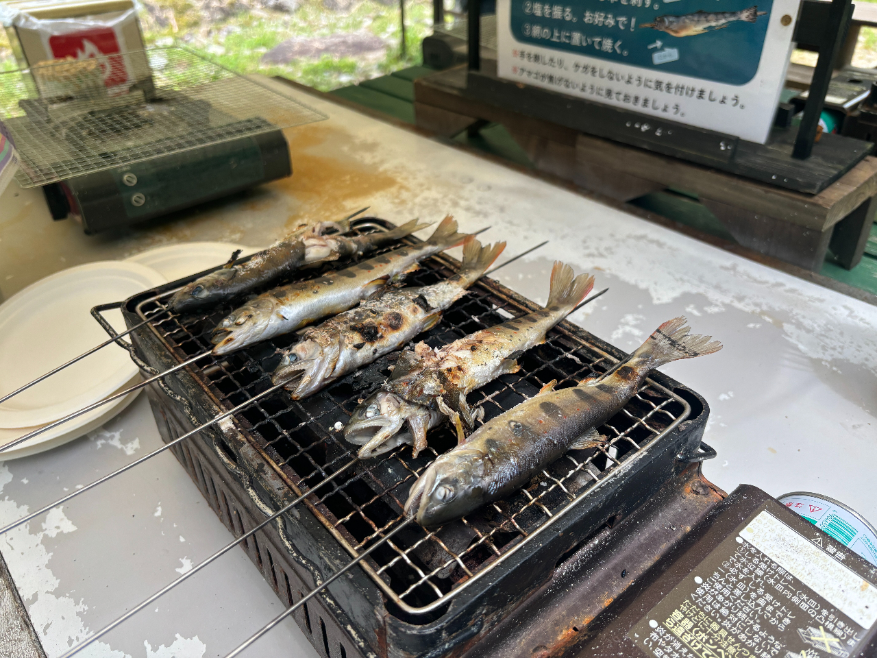 つかまえたあまごは塩焼きに!コンロなどは準備しております