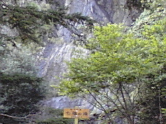 山肌の絶壁が滝となってて水しぶきが輝いていました。