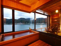 展望檜風呂はガラス張りとなっており、檜の良い香りとともに、ゆったりと流れる円山川をご覧いただけます。