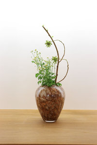 一見するとシンプルですが、ひとつひとつの花材が静かに寄り添い、調和して生まれる姿は、まるで一枚の絵画のよう。