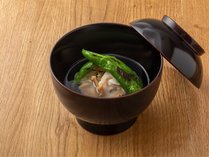 炭火で香ばしく焼き上げた赤バイ貝を、澄んだ一番出汁に合わせた椀物です。