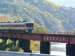 香美町を流れる矢田川は普通の川ですが、山陰本線が火口付近を通っており、たまたま列車が通過するところが見れました。ラッキーです。