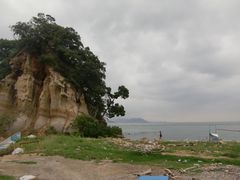 海水に削られた岩屋も迫力があったけど、その周りには生活用品がたくさん流れ着いていました。台風で波が運んできたのだと納得。釣りをしている人がたくさん見えて、見せていただいたら、アオリイカを釣ってみえるとか。波打ち際でも釣れることに驚く山人の私たちだった。
