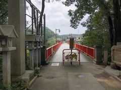 昭和6年に信貴山朝護孫子寺への参道として架けられた朱塗りの橋。上路カンチレバートラス橋と呼ばれる珍しい形式の橋で、日本で現存する最古例として2007年度に国の登録有形文化財となりました。