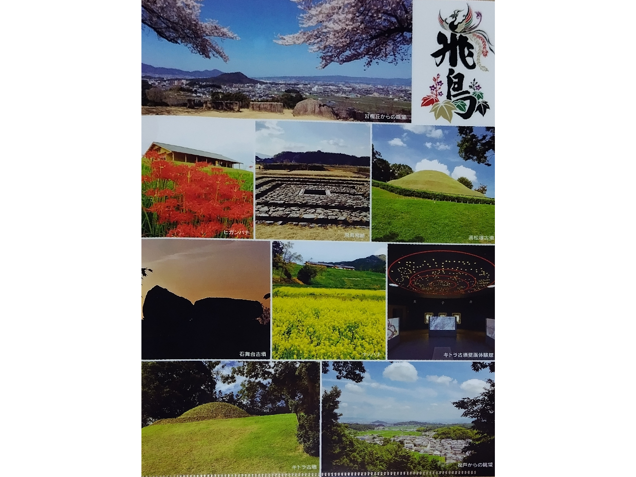 当館では52年前の高松塚古墳の壁画発見当時に著名な日本画家の方々が色合わせを行い忠実かつ精巧に再現された極彩色の模写壁画を鑑賞頂けます(クリアファイルは飛鳥の風景や遺跡を題材とした特製のものです)