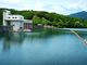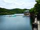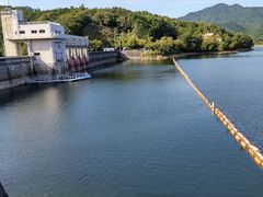津風呂ダムによって造られた人造湖です。国道から少し入ると、ダムに到着します。今は新緑がきれいでした。ボートで釣りをしている人の姿がありました。