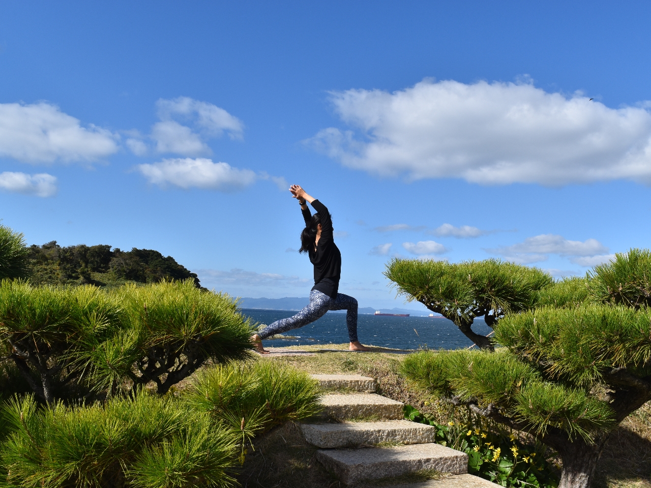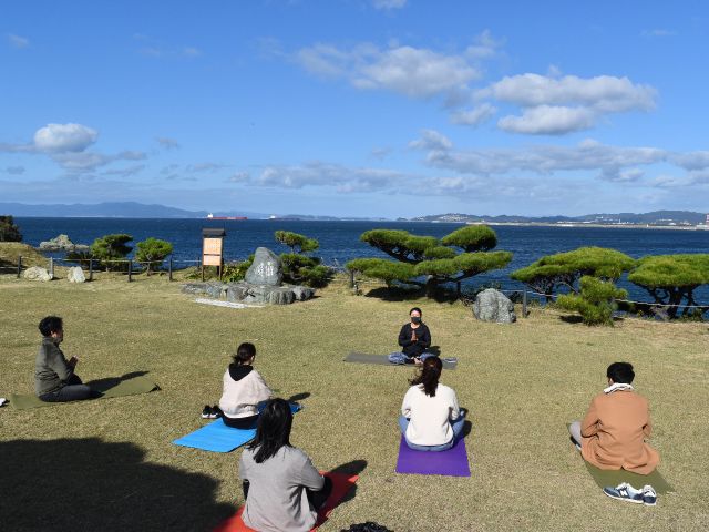 日本遺産の和歌の浦の岬の先端にある景勝地『番所庭園』でのヨガ体験。