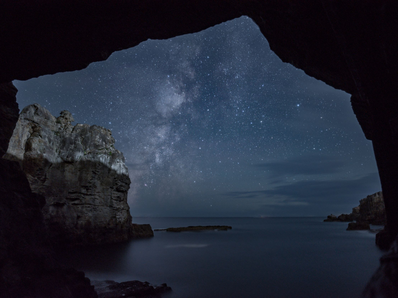 洞窟に打ち込んでくる波