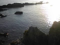 江須崎島の中に向かう道が自然歩道と呼ばれていますが、軽自動車がぎりぎり通れる程度の幅で、左右に青い海が迫った岩場の中を進む一本道です。自然歩道からの海の眺めは素晴らしいの一言に尽きます。