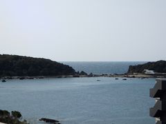 道の駅すさみから見た江須崎島自然歩道:中央に見える連絡道