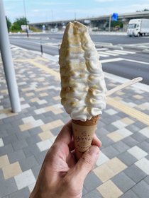 ボリュームたっぷりのソフトクリームは濃厚で、もっちりとした食感がありました!
