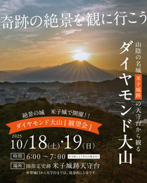 投稿時期:2025年02月16日年間でも限られたタイミングでしか見ることのない、朝日が大山頂上と重なる絶景「ダイヤモンド大山」を、米子市を一望できる米子城跡天守台から鑑賞するイベントが2月22日(土)に開催されます。