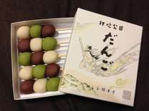 白あん・小豆あん・抹茶あんの3種類のあんで包まれた餅を串に刺した打吹公園だんごは、味よし見た目よしで、老若男女問わず大人気!