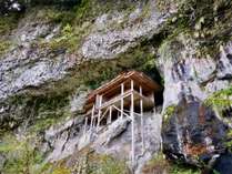 - 三徳山三佛寺の奥の院で、706年の昔 役(えん)の行者が平地で建てたお堂を法力で岩屋に投げ入れたと伝えられています。 標高520 メートルのところ後部を岩屋に据え、前面は断崖に向けての舞台造り。