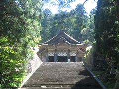 休日だったので、朝早く参拝しました。そのおかげで、境内一帯の空気は澄んでいました。まだ、暑さの残る時季でしたが、ここまで登るのにさほど汗もかかず、清々しい気分でした。ただ、少し雲があり、大山の北壁ははっきりとは見えませんでした。それだけが残念です。大神山神社奥宮は、本殿・幣殿・拝殿と末社下山神社本殿・幣殿・拝殿が国の重要文化財に指定されています。