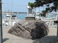 御来屋漁港にある「後醍醐天皇お腰掛けの岩」