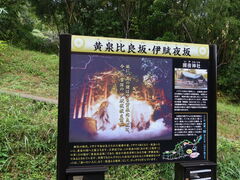 黄泉の国(あの世)とこの世の境とされる。古代出雲神話の中で、イザナギ(伊邪那岐命)が先立たれた妻イザナミ(伊邪那美命)を慕い、黄泉国を訪ねて行かれるその入口が黄泉比良坂であると伝えられる。古事記ではこの地を出雲国の伊賦夜坂であるとしており、「神蹟黄泉比良坂伊賦夜坂伝説地」と刻まれた石碑が建っている。