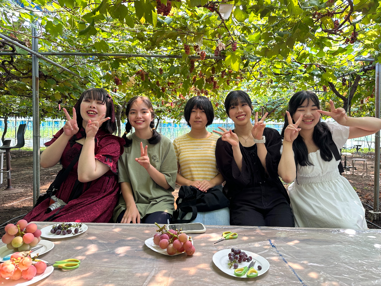 最初に説明を受けてハサミとお皿を受け取り一房ずつハサミで切取り全部の種類を食べました。