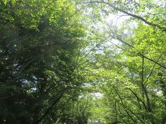門をくぐると、正面に緑の木々に囲まれた立派な拝殿があります。