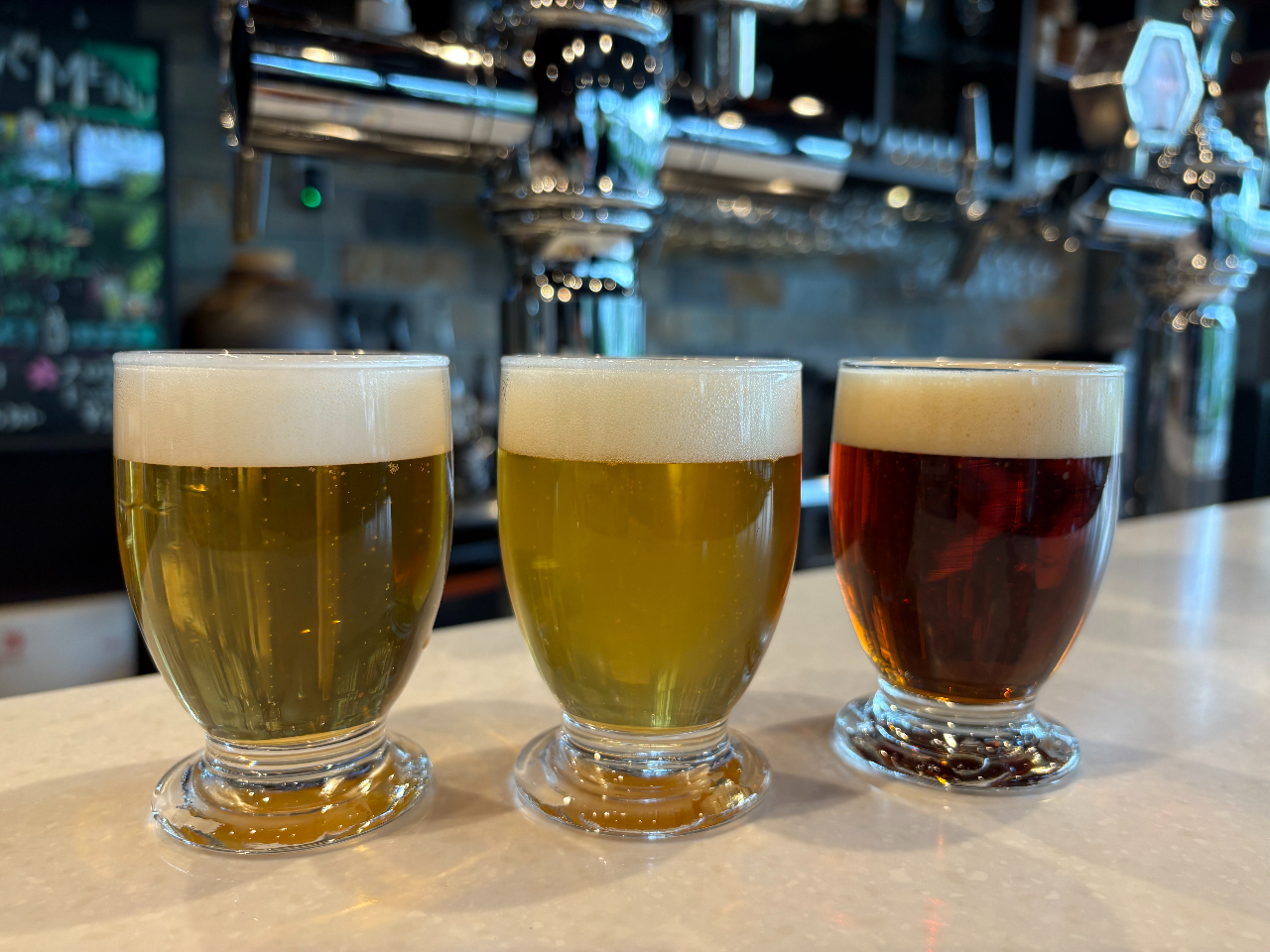 ビール飲み比べ。普通に運ばれてきて、ただ飲むだけです。 特にビールの説明などありません。