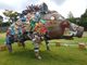 敷地には不用品を再利用して作ったカラフルなイノシシのオブジェも。