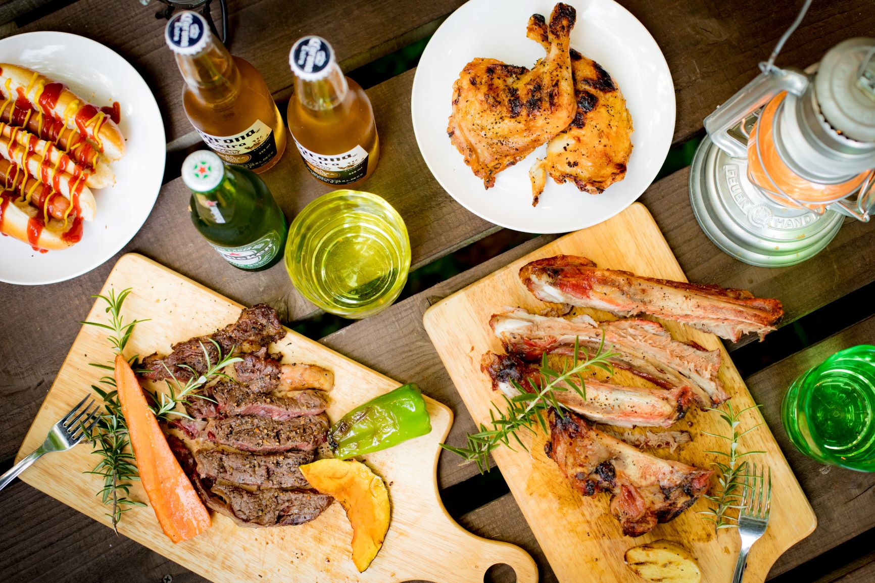 バーベキューは、分厚いステーキにスペアリブなど豪快なアメリカンスタイル