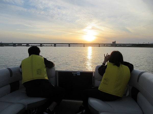 四国三郎の異名を持つ吉野川をサンセット時間にクルーズします。
