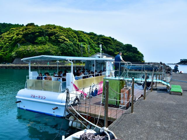 海中観光船ブルーマリン号は、室戸阿南国定公園の一部である竹ヶ島湾を約40分をかけて一周します。