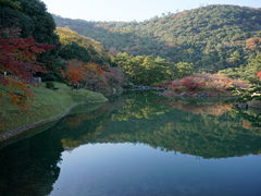 ツアーの一環で散策したので、時期的に紅葉には遅かったが、園内の紅葉が、池の付近等に少しは残っていて綺麗でした。