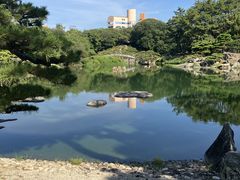 桜、菖蒲、萩、梅と四季折々の花の名所が点在する。大名庭園で三大名園にも劣らないと言われている。特に、紫雲山を借景にした広大な回遊式日本庭園で日本式の南庭と開放的な明治洋風の北庭に分かれている。6つの池と13の築山があり、黒マツを中心に草木も豊か。四方正面の珍しい茶室掬月亭や、南湖に架かる偃月橋からの眺めは絶品。