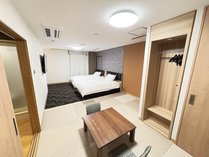 この度、洋風の寝室と和風のリビングが1度に体験できるお部屋になっており、幼児やお子様など遊びまわれるほどの広さになっております。また、小さなお子様限らずご高齢のお客様まで広々とリラックス出来る空間になっております。