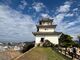 現存12天守の一つです。丸亀駅から徒歩15分ぐらいでした。大きな内堀があり、山の頂上に小さな天守閣(櫓)があります。やや急な坂道を登った頂上からは、瀬戸内海、讃岐富士、瀬戸大橋が見えました。天守閣は小さな建物で、内部には何もありません。最上階には渡り廊下もないです。また、天守閣以外の建物は何も残ってはいません。