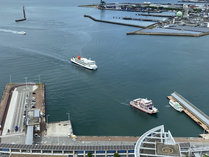 南側にはたくさんのビルやマンションが建ち並び、東側では高松港から船が行き来している様子を楽しめます。