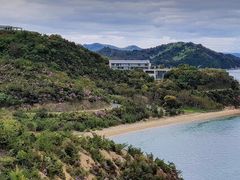 地中美術館のカフェから外に出て島々を眺めながらビール