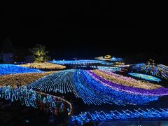 2024年の「ウィンターファンタジー」に行ってきました。広大な公園がイルミネーションで彩られた幻想的な光景は圧巻でした。シンボルツリー、シャンパングラスタワーのほか総面積約3万2千uのグランドイルミネーションなど見所は多く、会場内には小高い丘が何カ所かあるので高い位置から園内を見渡すこともできます。立地が山間部にあり、周りに街灯がないので色とりどりの光が綺麗に映えてました。