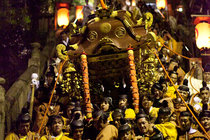 頭人行列や神輿渡御など盛大に執り行われ、午後9時頃には神輿の行列が表参道を進みます。
