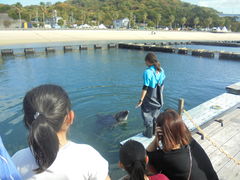 道の駅伯方SCパークにあって500円で見学できます。「キュー」と可愛い声を奏でながらこちらによってくるイルカを間近で見ることができます。訪問時(16:00ごろ)はちょうどイルカの餌やりの時間で餌を飼育員の方があげながら芸を見してくれました。あまり規模は大きくはないですがイルカの紹介も一頭ずつあり工夫が見られて面白かったです。