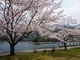 公園(駐車場)は工事中で入れませんでしたが、湖の畔に桜が沢山あり、満開で綺麗でした。散り始めの桜もあり、風が吹くと花吹雪も綺麗でした。