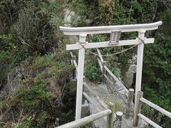 足摺岬集落の氏神の白山本宮参道の上部は岩場で危ないので,遊歩道脇にある鳥居から遙拝するよう呼びかけられていました。