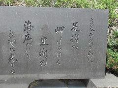 ジョン万次郎の像を起点に足摺岬自然遊歩道があり,樹々のトンネルのような木陰を通って散策できます。展望台から天狗の鼻へ歩くと,天皇陛下が皇太子時代に詠まれた歌碑が建てられていました。