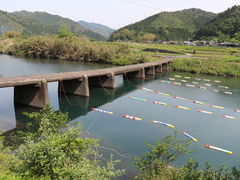 松葉川温泉の人にすすめられ、四万十川現存で最も古い沈下橋で国の登録文化財の一斗俵沈下橋へ急遽行くことに。観光客がまばらで、ゆっくりのんびり、四万十の風景を端能できた。こいのぼりが泳いでいるのが何とものどかで癒されました。(5月連休の旅)