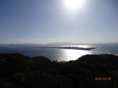 志賀島の最高所。海の中道を境に外洋内湾天孫降海をおもわせる360度の眺望が楽しめる。