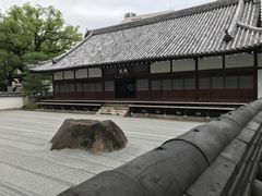 博多千年門から続く承天寺通りで境内が2つに分かれています。北東側の門をくぐると、緑豊かな敷地の中に饂飩蕎麦発祥の碑や御饅頭所の碑があります。博多が渡来文化の窓口だったという歴史の重みを感じます。向かって左手にある塀の上から覗き込むと、厳かな方丈の前に美しい石庭が広がっています。残念ながら、檀家以外立ち入り禁止となっており中には入れません。とても美しい境内なので、拝観料をとって一般開放して欲しいなと思いました。
