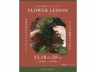 【要予約】12/18(木曜日)10時〜11時半 1DAYフラワーレッスン【生花で作る 小さな妖精が住むクリスマスリース】