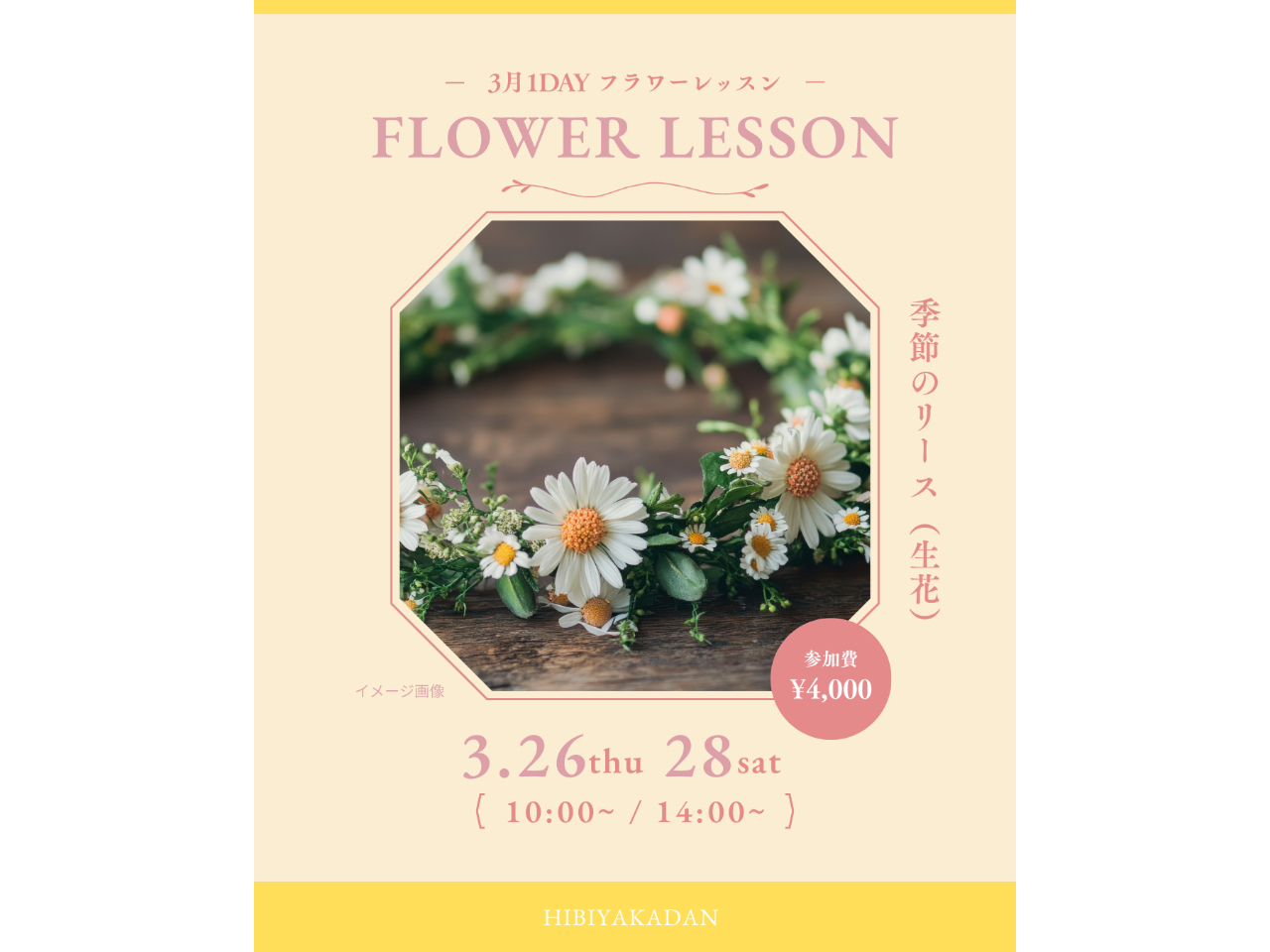 3/28(土)10時〜11時半 1DAYフラワーレッスン【Spring lease】生花