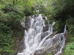 落差24m。真っ白な飛沫を上げてとうとうと流れ落ちるさまは、圧巻。県指定の名勝であり、前面に玄界灘を望む。また「ふれあいの里」でそうめん流しやヤマメ釣りを楽しむこともできる。