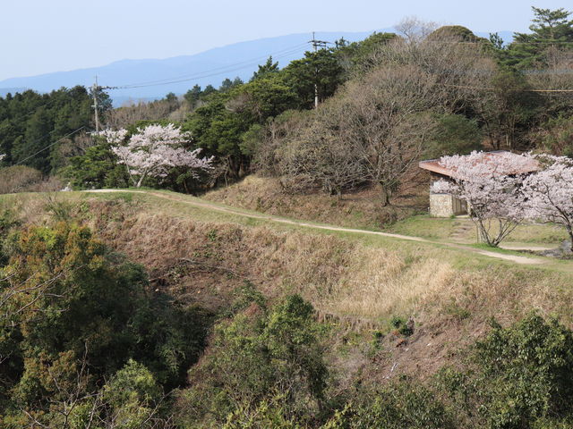 土塁の上に登ってみると人造の構造物が連なっていることがわかる