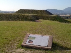 城山の北麗に造られた古墳時代前期の古墳で、全長40.4メートル、九州では類例の少ない前方後方墳です。埋葬施設は確認されてませんが、この古墳の被葬者は当地方を治めていた首長と考えられています。国指定史跡。