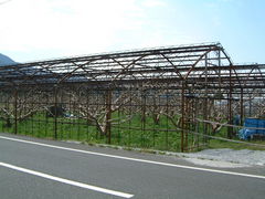 果物の里田主丸の柿狩りです。JR田主丸駅舎併設の田主丸ふるさと会館で受付をしているようです。この時期はこの地区をまわっていると、低い割には太くて、花も実も葉もついていない果樹園があります。棚があるのがぶどうの木ですので、こっちが柿木でしょう。
