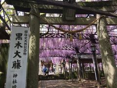 素盞嗚神社の小さな社殿を取り囲むように樹齢600年越えの藤棚が広がります。東西約50m、南北約80mで、開花期の4月下旬から5月上旬にかけて0.8?1.5mの紫の花房を垂らします。毎年藤の見頃の間、八女黒木大藤まつりが催されます。